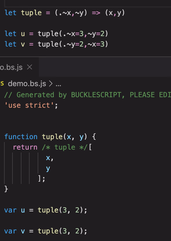 let add = (. x, y ) => x + y; let u = add (1, 2)